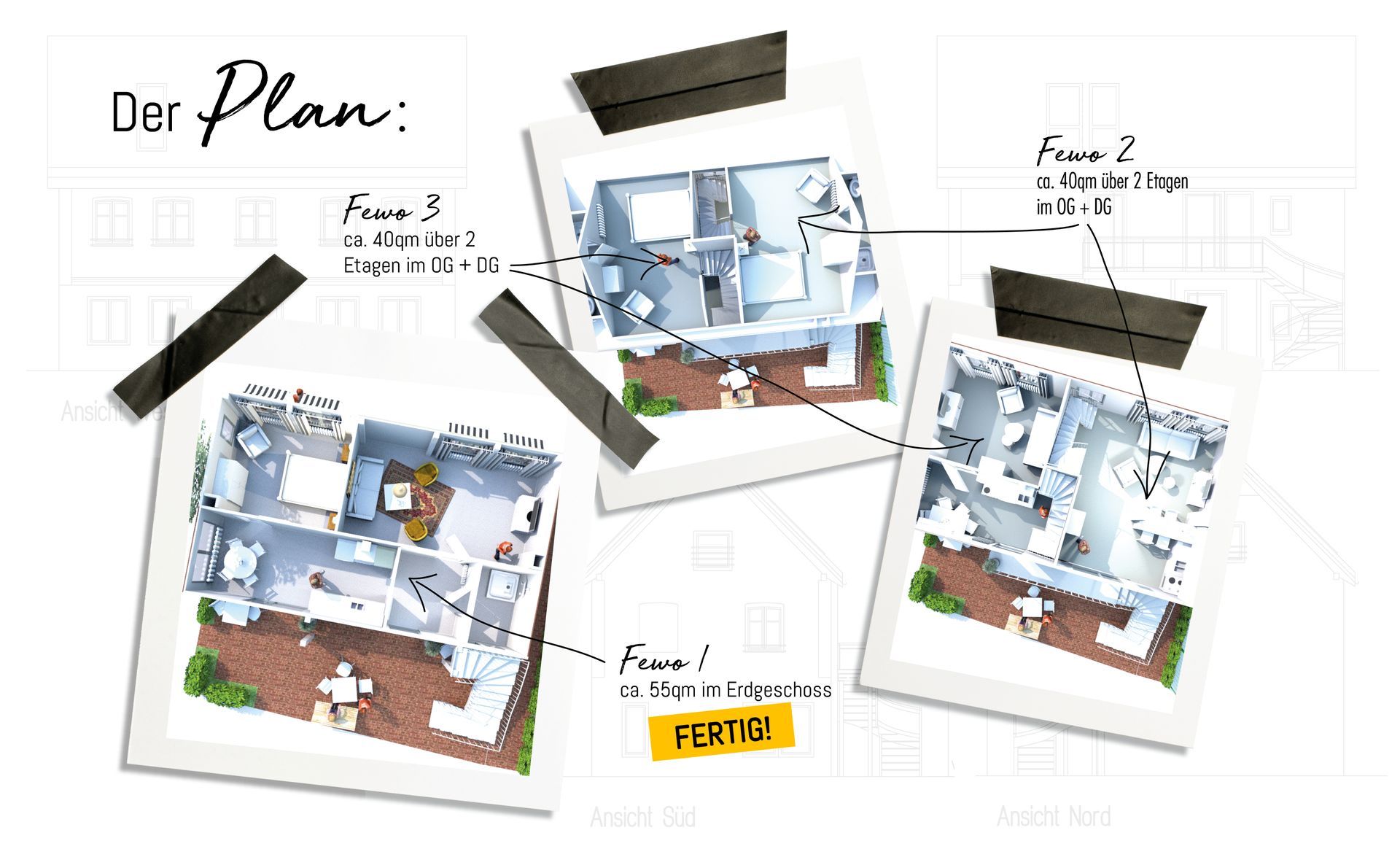 Seitdem hat sich langsam aber viel getan: Nahezu im Alleingang haben wir das Haus technisch und optisch in die heutige Zeit geholt und seit Februar 2023 ist nun endlich die große Erdgeschoss-Ferienwohnung No. 1